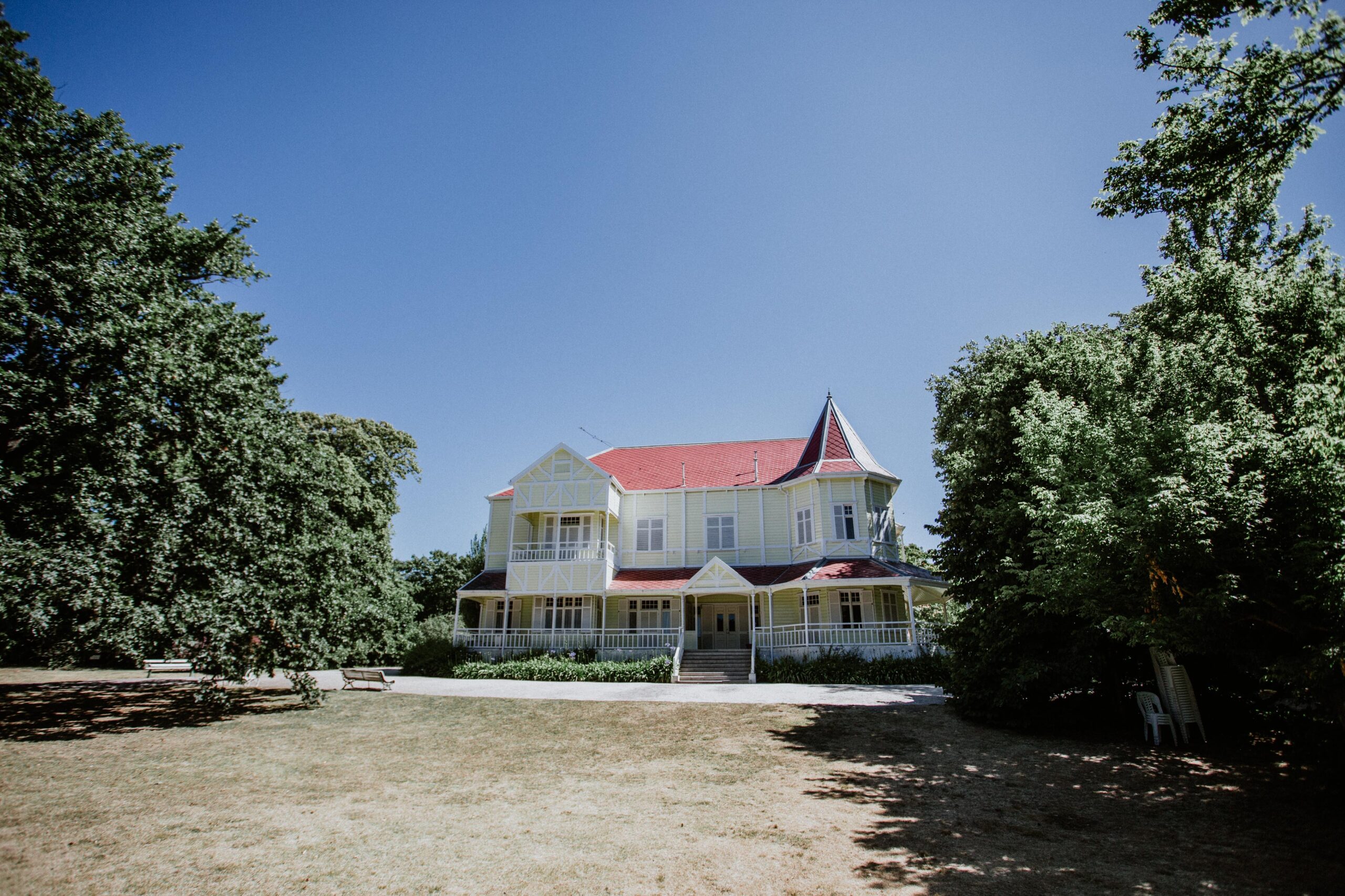 La casa principal posee estilo inglés, mientras que la casa de los caseros es de estilo francés y la tercera construcción es de estilo italiano. Esta última era destinada a vivienda para el personal de servicio y un garaje doble con salida a la calle Matheu en planta baja.